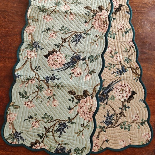 Add a touch of quiet botanical charm to your table with Bloom Cascade — where delicate florals, graceful birds, and timeless quilting come together in perfect harmony.