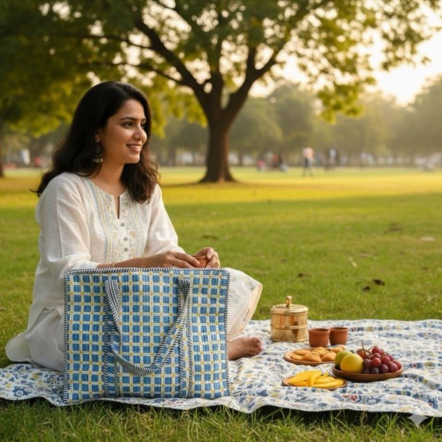 Designed for everyday practicality, Check Box offers a spacious interior, comfortable long handles, and a secure zipper closure. Ideal for office days, casual outings, picnics, get-togethers, or busy mom routines, this tote is crafted from 100% cotton, making it lightweight, durable, and comfortable to carry through the day.