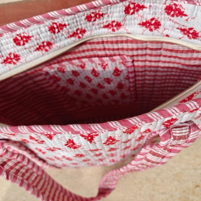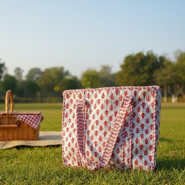 Rooted in traditional Indian dye-inspired patterns, Rangrez brings a warm, artisanal charm to everyday carry. Featuring rich red motifs on a soft ivory base, this tote feels timeless yet fresh—perfect for adding a touch of heritage-inspired elegance to your daily routine.