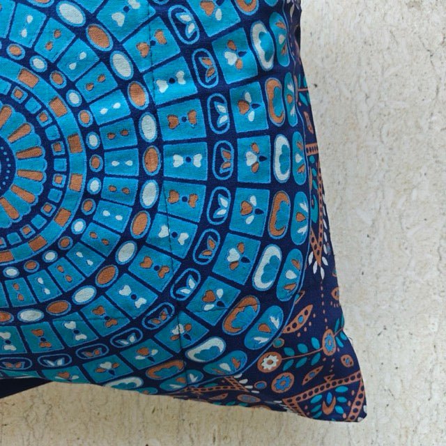 Add depth and character to your living space with the Vortex Mandala cushion cover set. Inspired by intricate mandala patterns, this design features layered circular motifs in rich shades of blue and teal with subtle earthy accents. The symmetrical pattern creates a sense of rhythm and balance, making these cushions a striking yet calming addition to modern and traditional interiors alike.