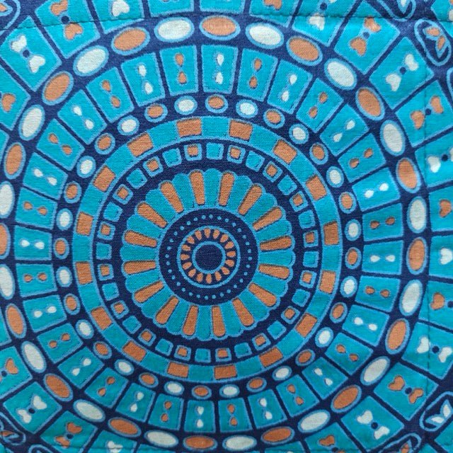 Design Style: Intricate mandala pattern in rich blue and teal tones with geometric detailing