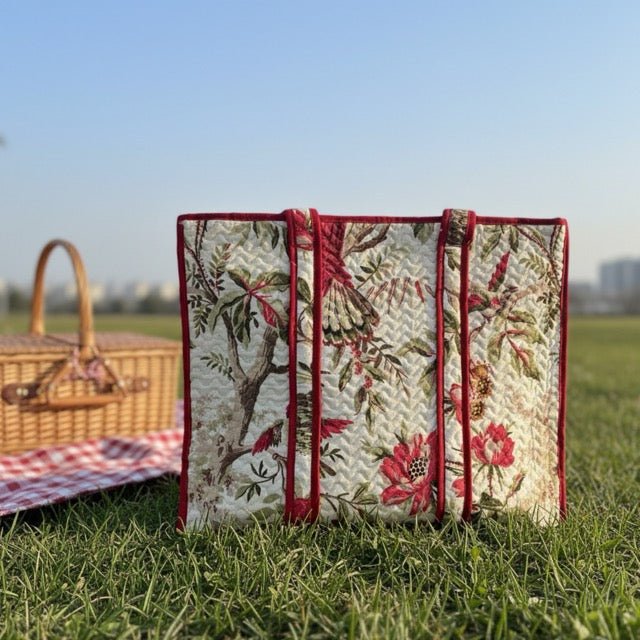 With its rich colour palette and nature-inspired detailing, Crimson Meadow is perfect for those who love expressive prints paired with everyday functionality in one beautifully crafted tote.