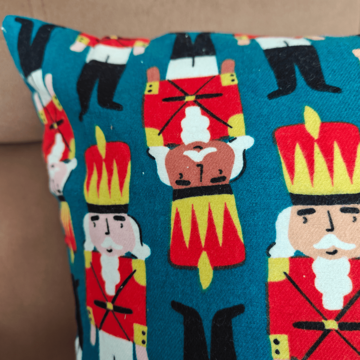 Say hello to festive charm with Troupe — a playful Christmas cushion cover inspired by the iconic nutcracker brigade. Featuring bold colours, cheerful character repeats, and winter-ready texture, this design adds fun and warmth to your holiday décor.