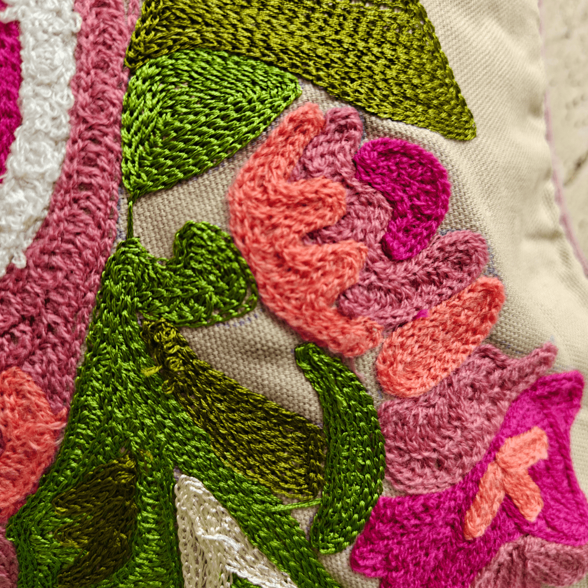 Whether styled solo or paired with other embroidered pieces, Nira adds warmth, vibrancy, and an unmistakable artistic flair to any room — a true conversation starter for your home.