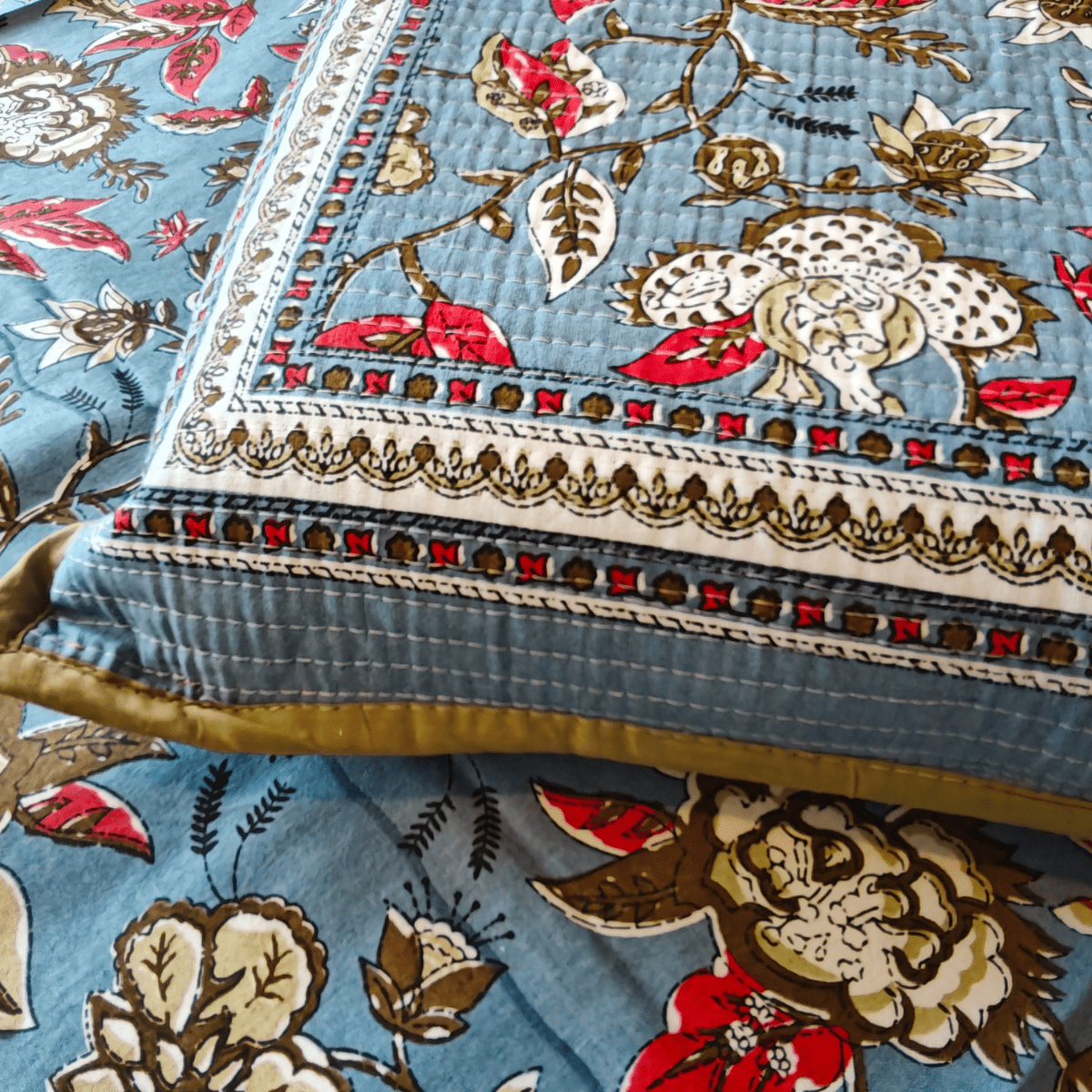 Highlights: Premium-quality fabric, quilted pillow covers, rich and long-lasting colours